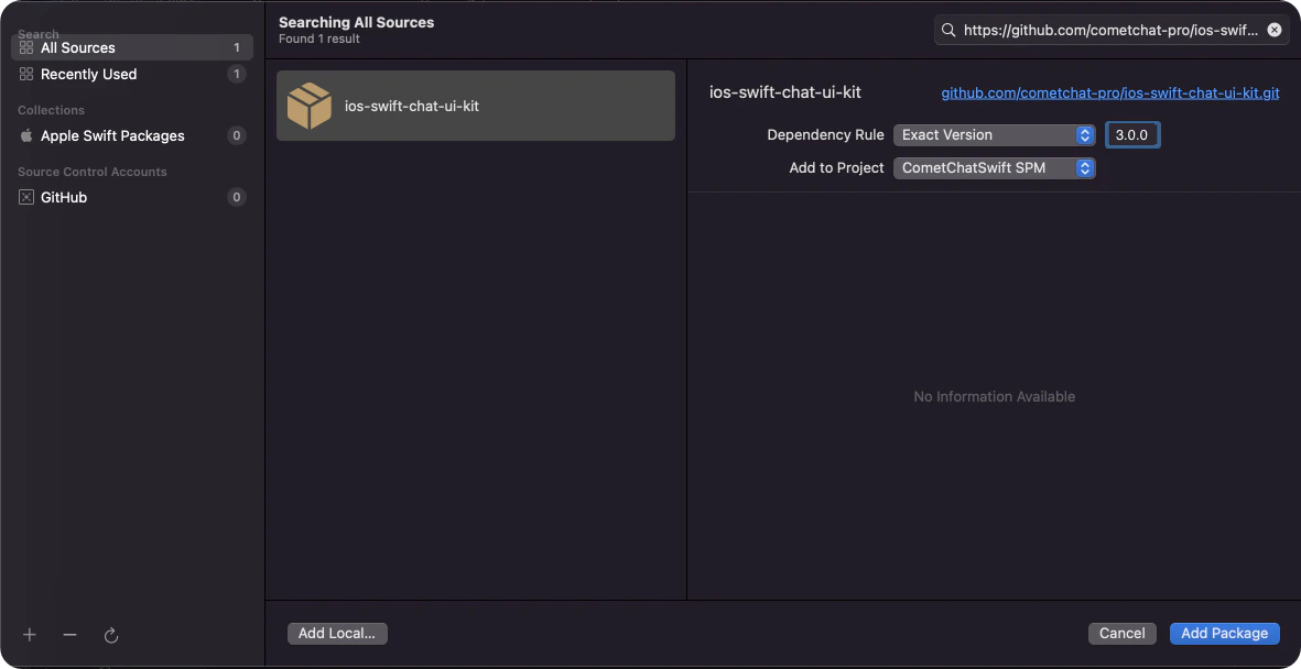 1. Add CometChatProCalls into your Package Repository as below: