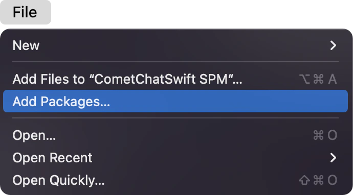 1. Go to your Swift Package Manager’s File tab and select Add Packages.