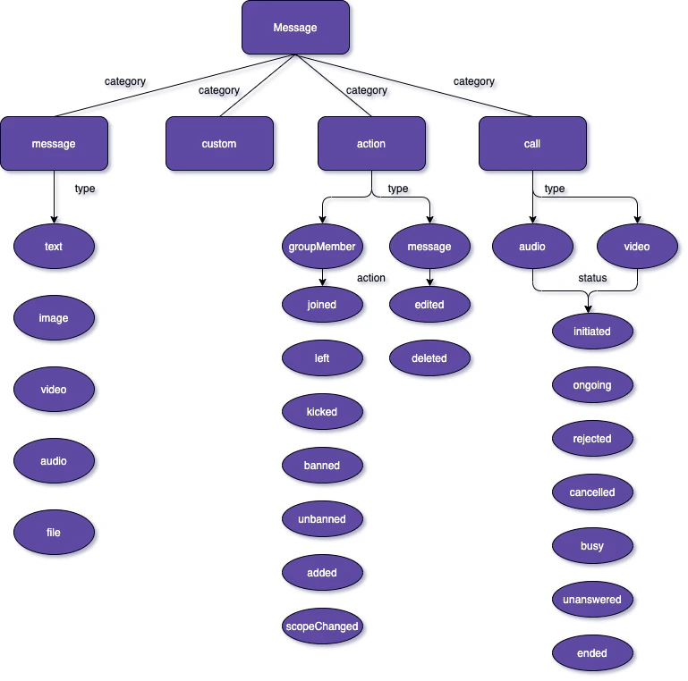 Each category can be further be classified into types. #Message A message belonging to the category message can be classified into either 1 of the below types: