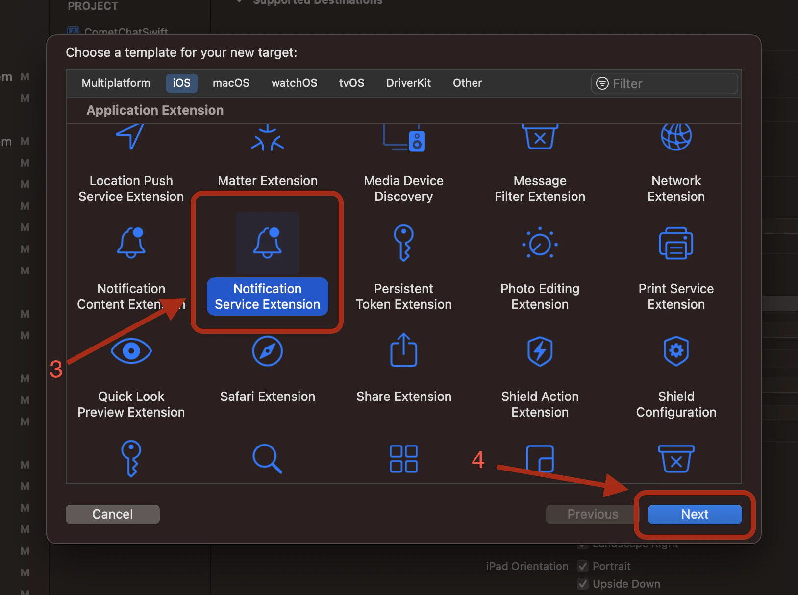 - Then Scroll down, select Notification Service Extension and click on the next.