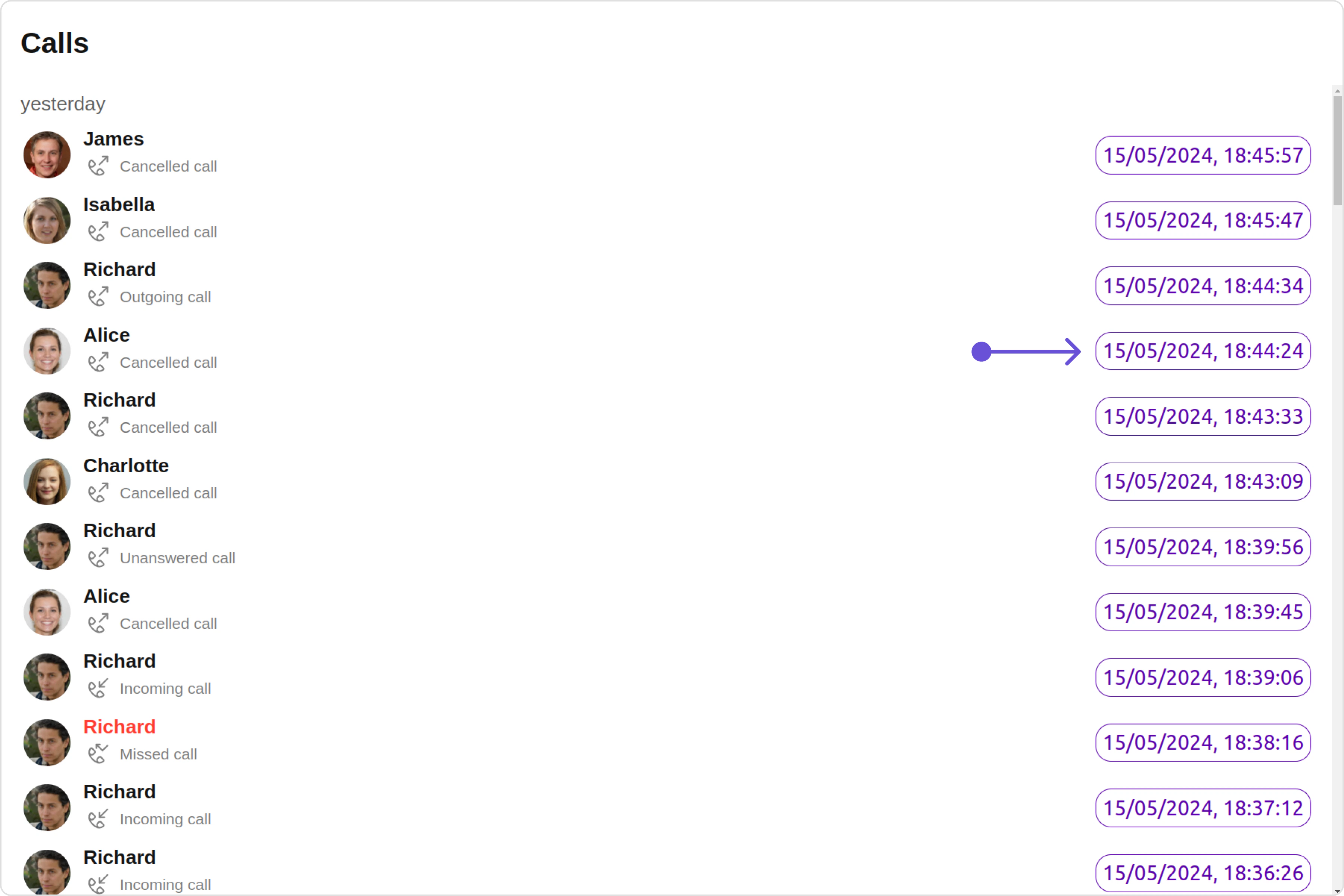 With this property, you can assign a custom ListItem to the Call Logs Component. Example Default: