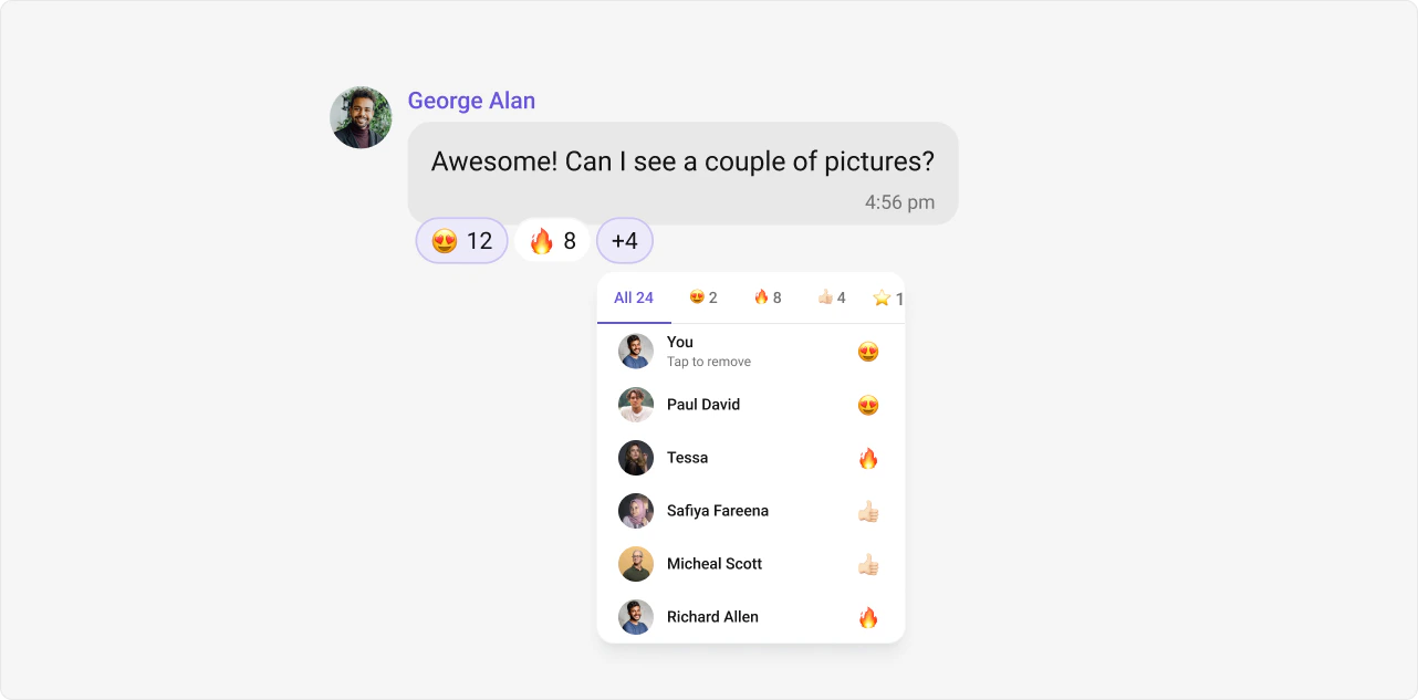 Reactions let users express emotions or respond to messages without typing a full reply, adding expressiveness and boosting engagement.