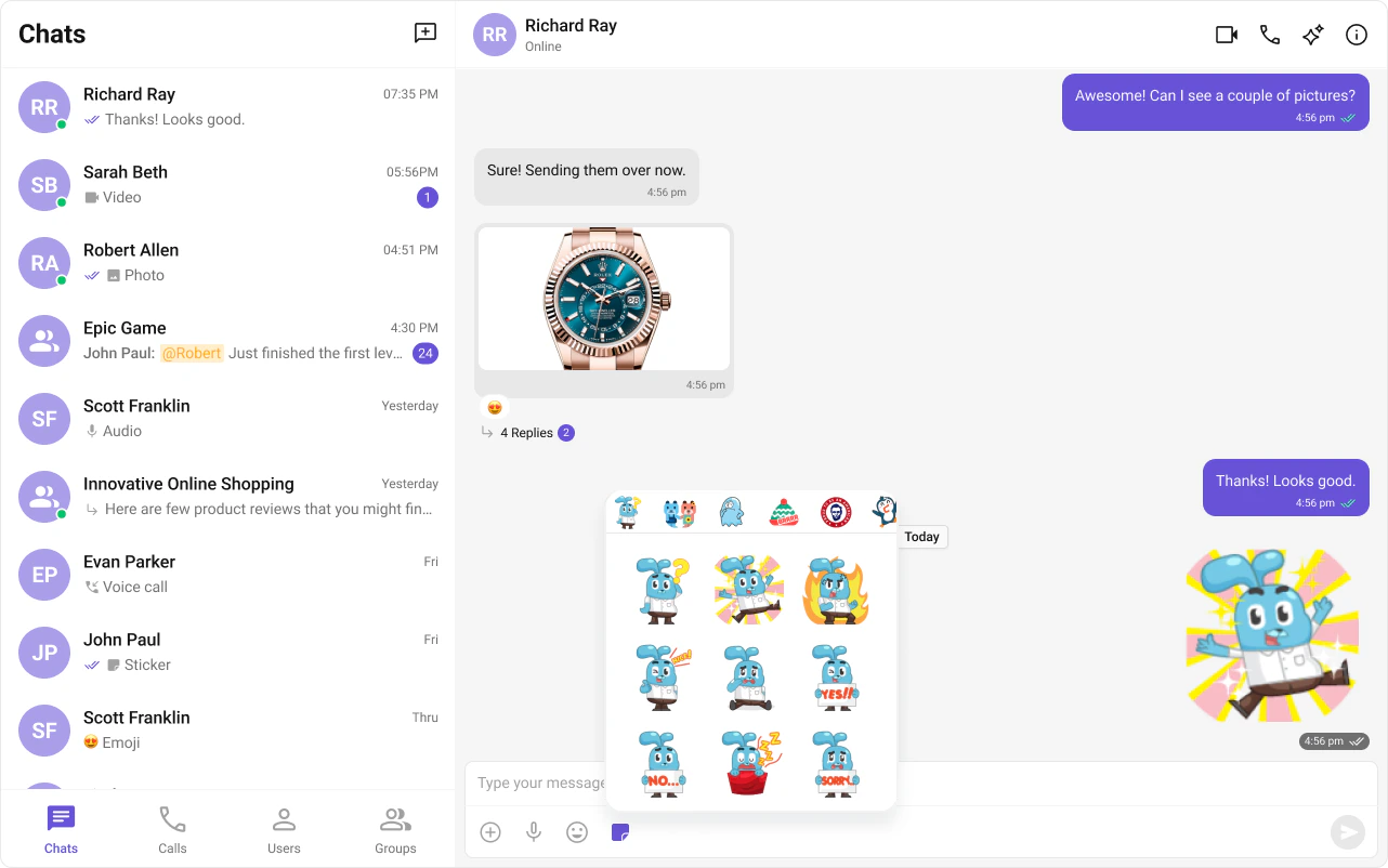 Core chat features like messaging and reactions