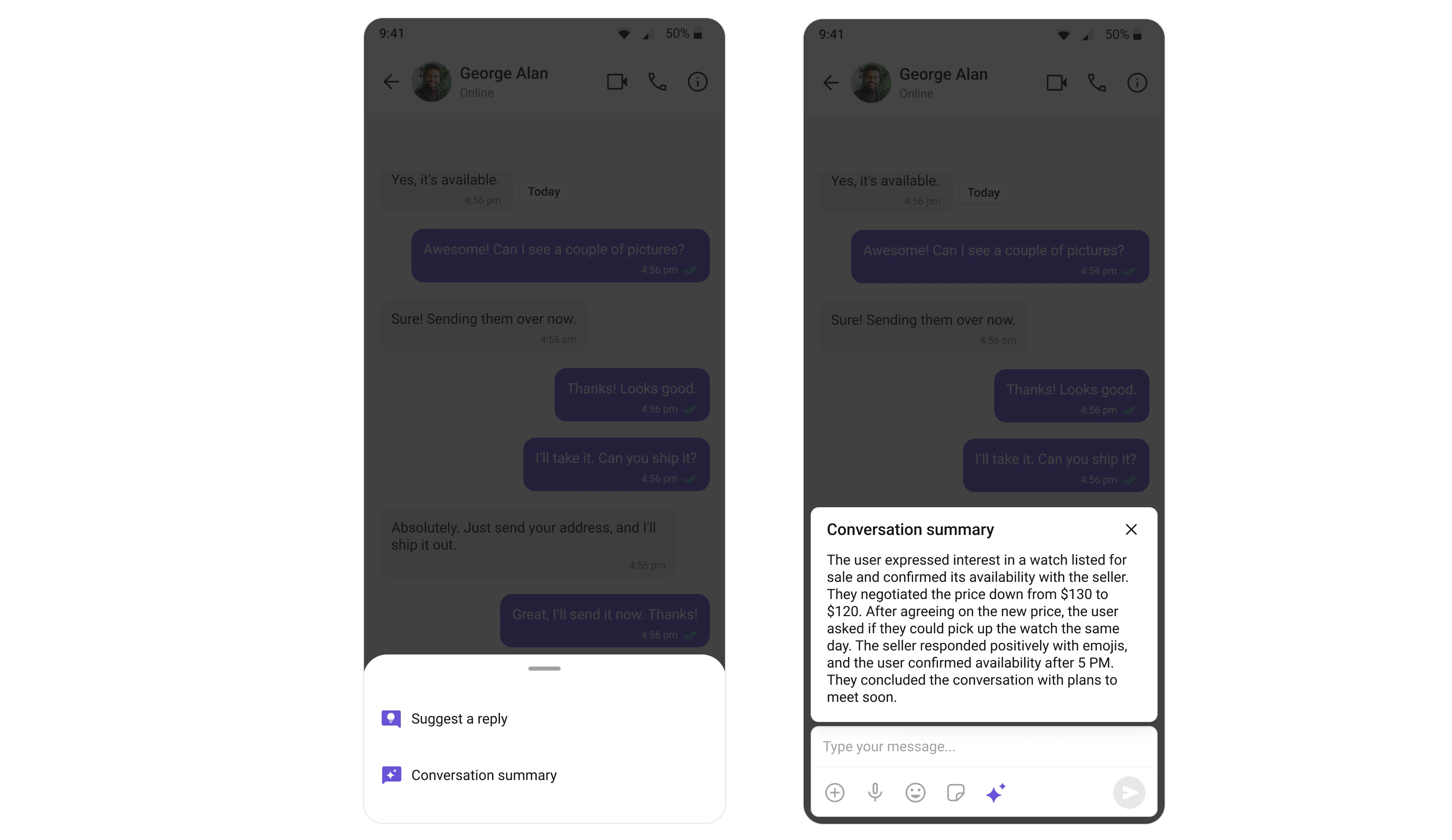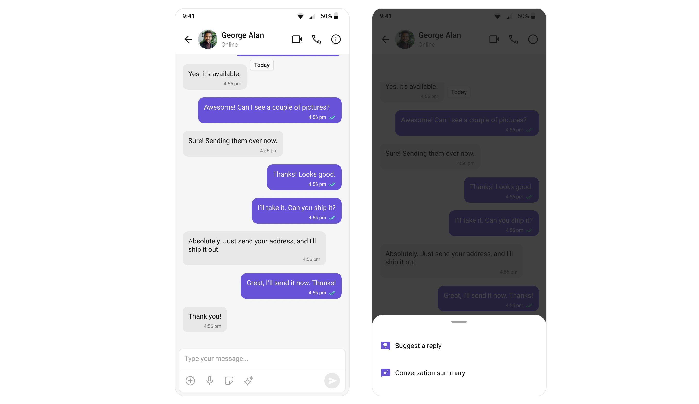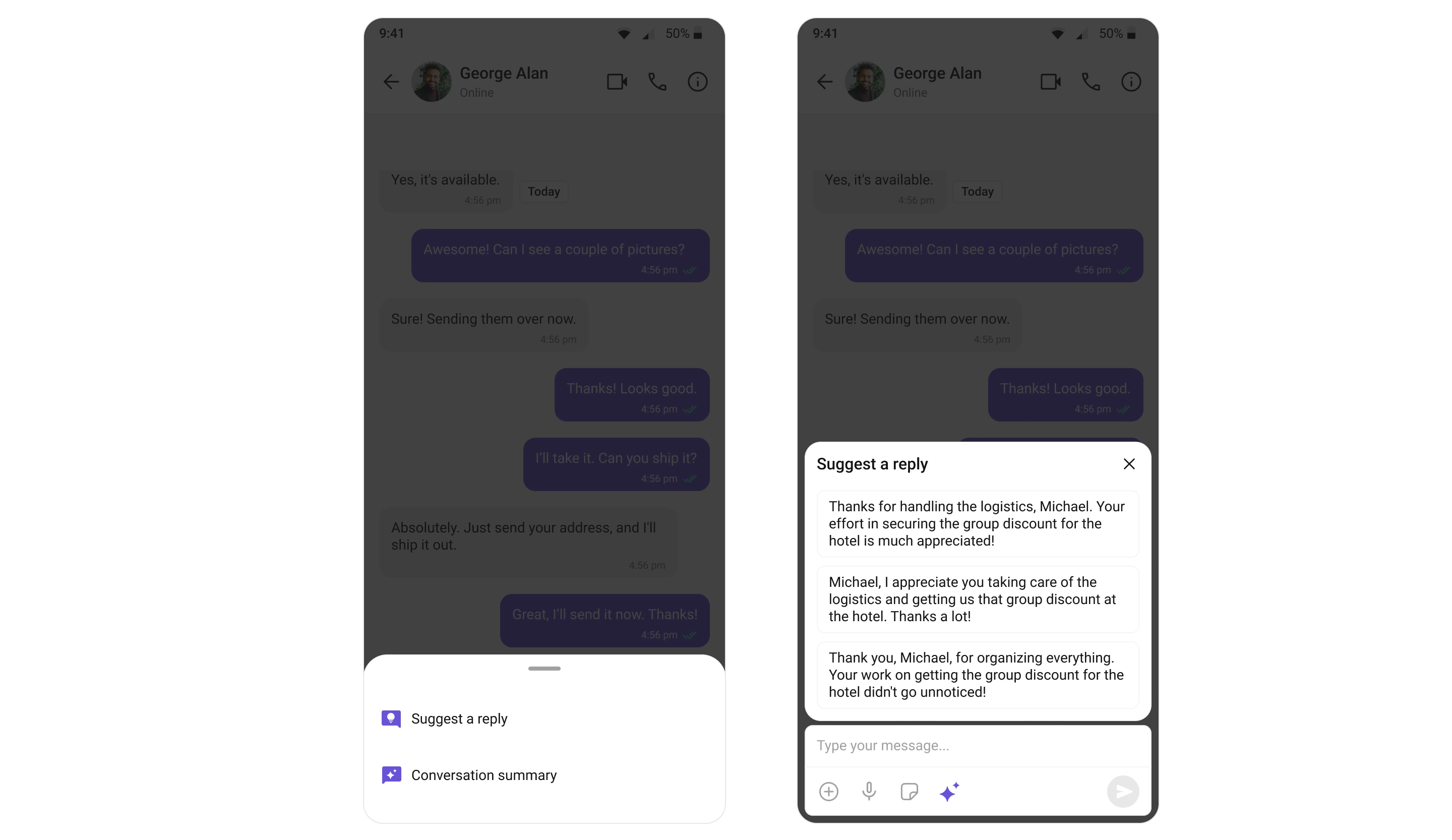 Compose messages with smart replies and AI assistance