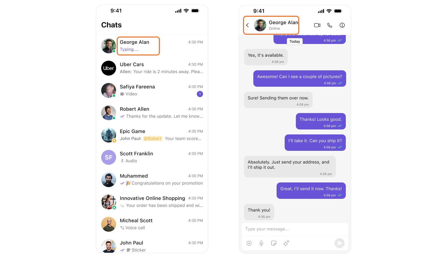 // - CometChatMessageHeader (shows "typing..." below user name)