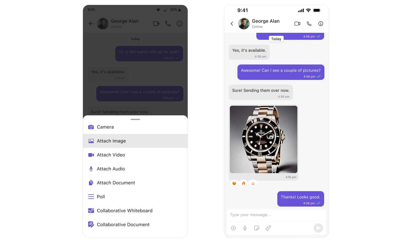 CometChat.sendMediaMessage(message: mediaMessage) { message in