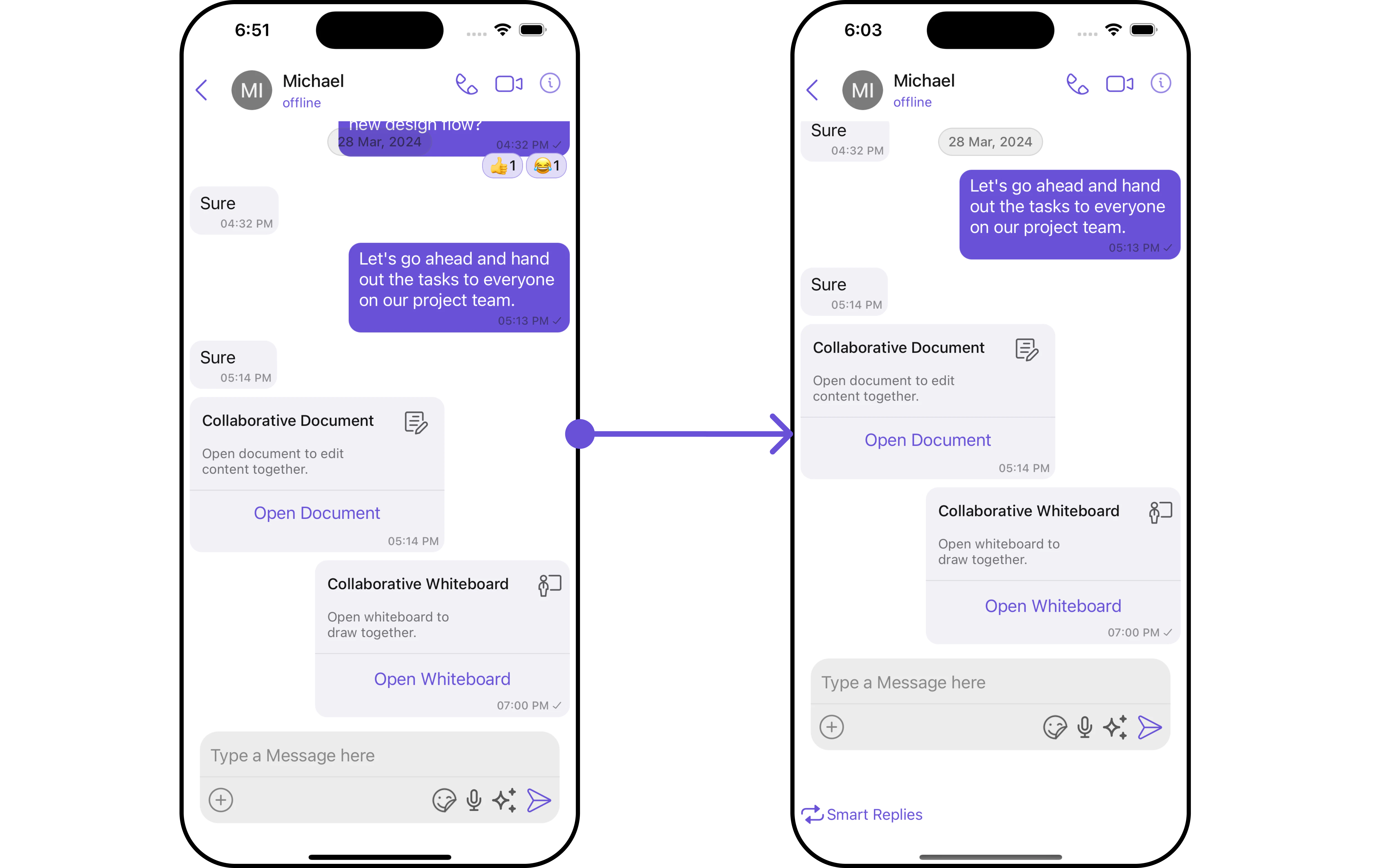 cometChatMessages. If a navigation controller is already in use, utilize the pushViewController function instead of directly presenting the view controller.FooterView