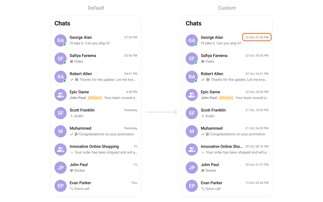 Custom function to format conversation timestamps.