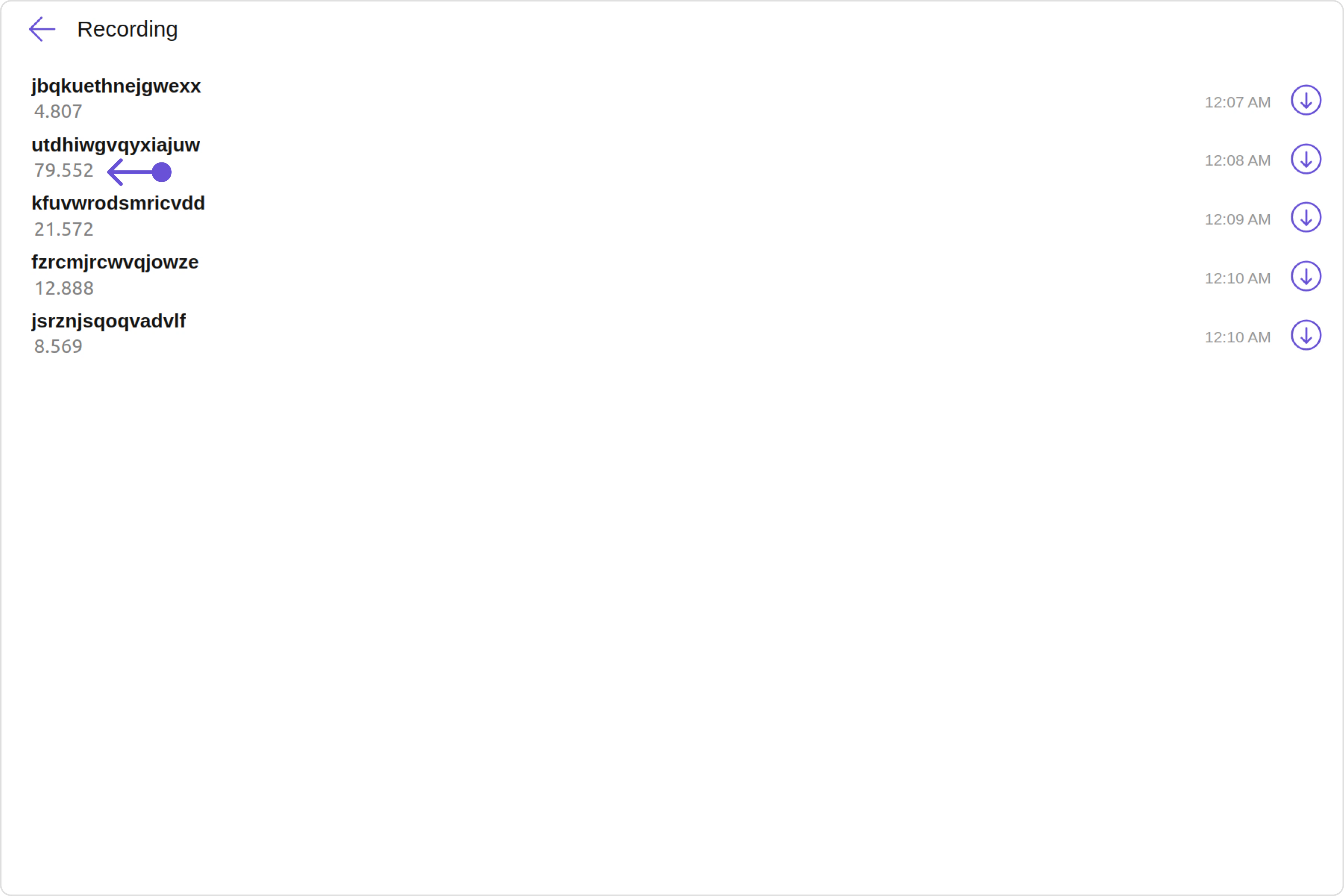 TheCometChatCallLogRecordings is a Component that shows a paginated list of recordings of a particular call. This allows the user to see all the recordings along with the duration as well as a download link using which one can download the recording.